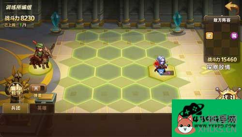 玩家可以在游戏的主界面上看到训练中心的位置,点击进入训练中心大厅进行战斗训练。训练中心分为三个阶段:新兵训练营、精英训练营、皇家训练场三个不同困难阶段的入口。今天,让我们详细了解一下新兵训练营的暗仓库、东击西和破釜沉舟。