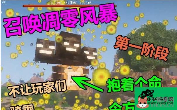 好了,停下来,让我们步入正题。伊索之前给大家介绍过召唤师模块。不知道大家还记不记得了,但重点是重头戏还没说完。你觉得驯服一个枯萎很厉害吗?你以为我要驯服的是末影龙吗?哈哈,其实不是的,因为这一次带给大家的,是驯服凋零风暴呢!除了枯萎风暴,还有这些有趣的召唤,比如巨人僵尸,巨人僵尸可以骑火焰史莱姆,然后枯萎风暴出现!