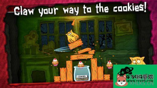 《贪吃猫(Cat on a Diet)》这是一款益智物理游戏。主角是一只永远吃不饱、吃不饱的胖猫。主人睡着的鼾声是它开始行动的信号。不管怎样,只要没它,翻箱倒柜找饼干是它最喜欢的事情。在游戏中,每个层次都有三块蛋糕、一罐饼干和几块木头。胖猫一动不动地蹲在木头上(胖得站不起来),但它们的眼睛看不起来。这时,我们必须触摸屏划线,抓住木头,帮它滚动时吃蛋糕,最后落入饼干罐中,让它散开手吃饼干。