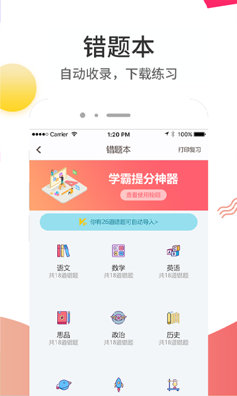 3. 精选应用,快速提分 — 试卷夹:妈妈再也不担心我丢试卷了;错题本:错题掌握成学霸。弱项练习:巩固训练,攻克短板!高分作文:让作文得高分!