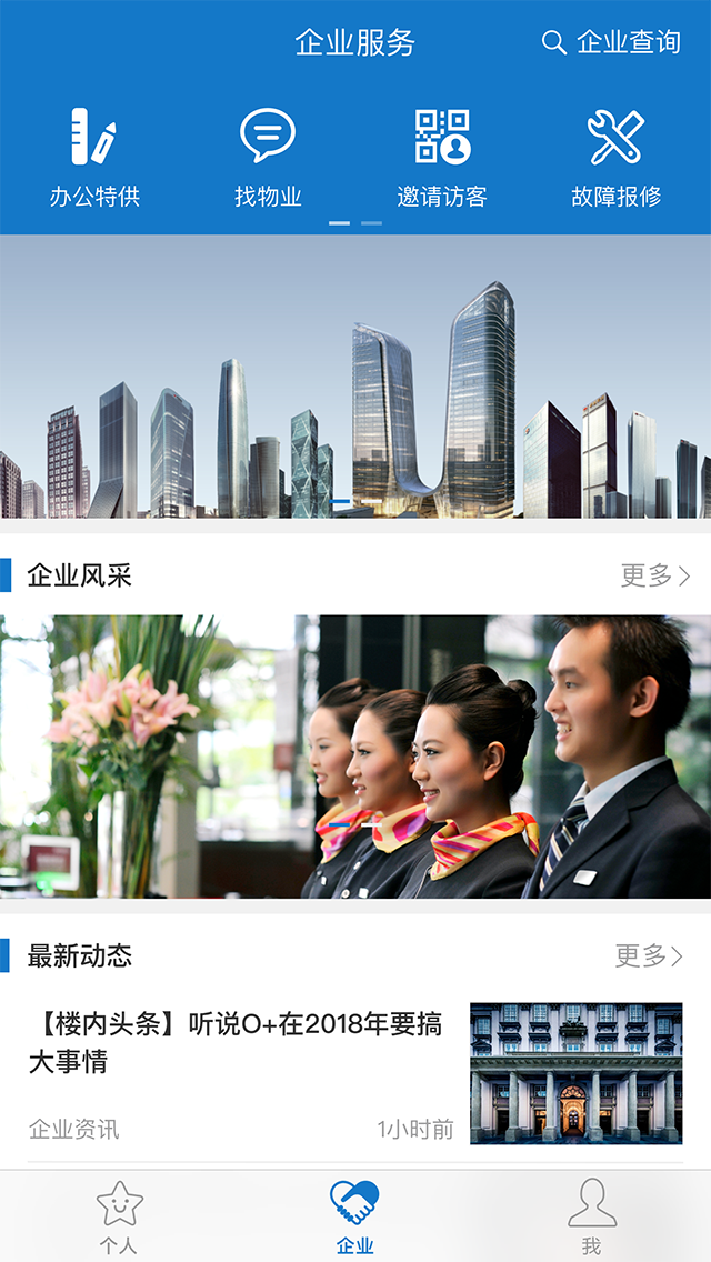 对于物业公司而言,可用高效而专业的顾问完成自有智慧平台上线。对于企业客户而言,平台可提供一站式企业服务解决方案,包括行政代采、企业福利、活动策划等。对于楼宇上班族而言,平台整合线下商家各类福利活动以及线上商城严选各大品牌低折扣商品,为C端客户提供便捷服务、专属优惠,呈现具有开放性思维的商务生活。