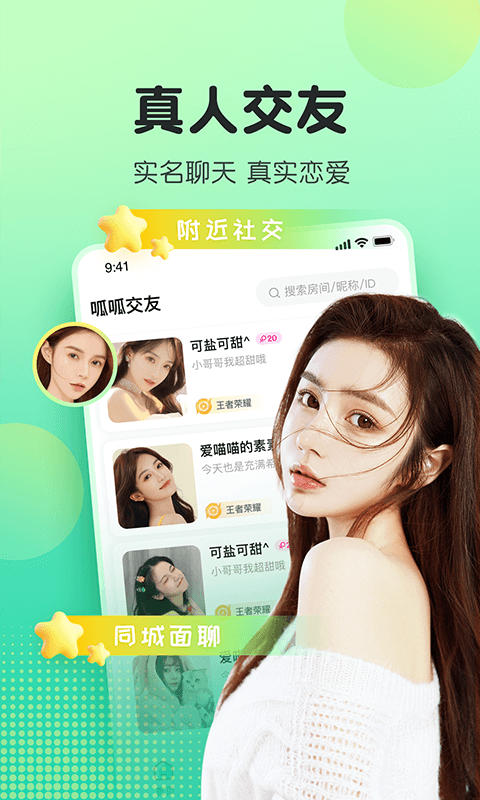呱呱交友是一款集语音聊天、声音交友、音乐陪伴为一体的语音交友app。在这里你可以同时与多位小哥哥小姐姐进行连麦互动,一起玩一起聊一起嗨,玩转声音的魅力。你也可以找个人安安静静陪你唱一首歌或聊一宿天...在这里你可以发现生活的美好,记录身边的美好。