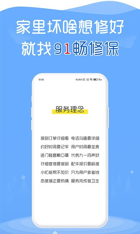 懂生活的人,更在乎上门服务的品质,91畅修保是一个以家庭维修保养为主的高品质服务的app,汇聚近10万名经过专业培训的维修清洗师傅,清洗标准化,维修标准化,价格标准化,牢记三大标准,时刻走在为业主提高服务品质的道路上!
