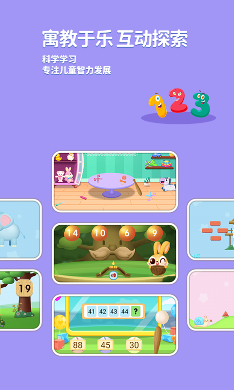 宝宝学数字123app,一般又称兔小萌数学启蒙。兔小萌数学启蒙充分研究了3-9岁幼儿学习与发展的基本规律和特点,激发孩子的学习兴趣,让你的孩子在娱乐中学到知识。游戏内包含所有数学基础学习,以游戏的方式让孩子爱上数学!