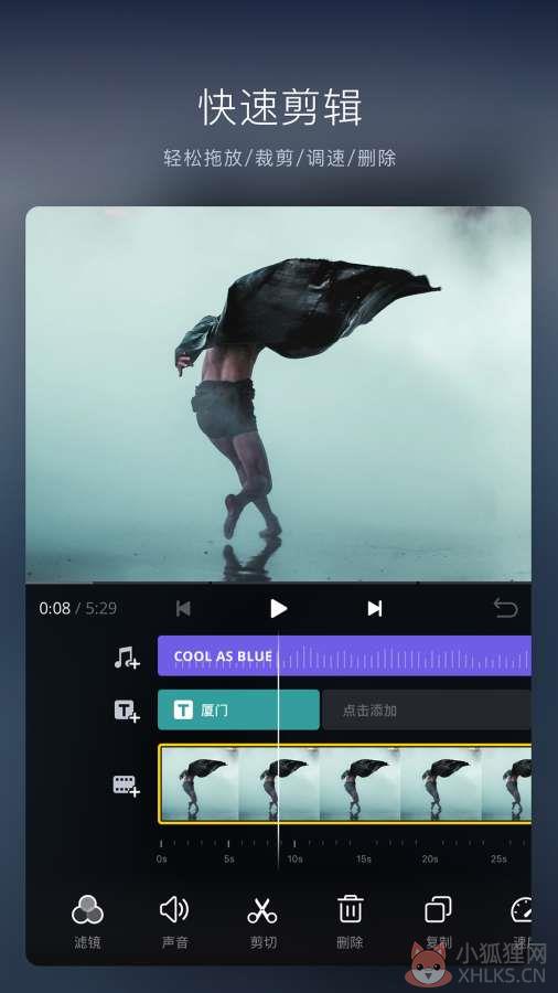 【快速剪辑】将 PC 端的剪辑轨道交互运用到【VN】中,指尖轻点即可轻松缩放素材,精确到秒选取需要剪切的关键帧。