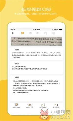 1、【拍照搜题】手机拍题搜题,涵盖小学、中学、高中等教学科目,海量题库。