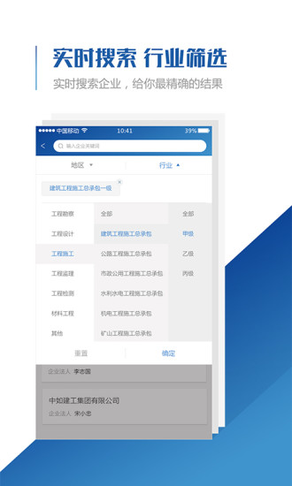 速查全国建筑企业资质信息;按资质分类建筑企业;了解建筑企业项目、人员信息;建筑企业一手掌握,快来分享你的企业信息,让更多的人了解您的企业!