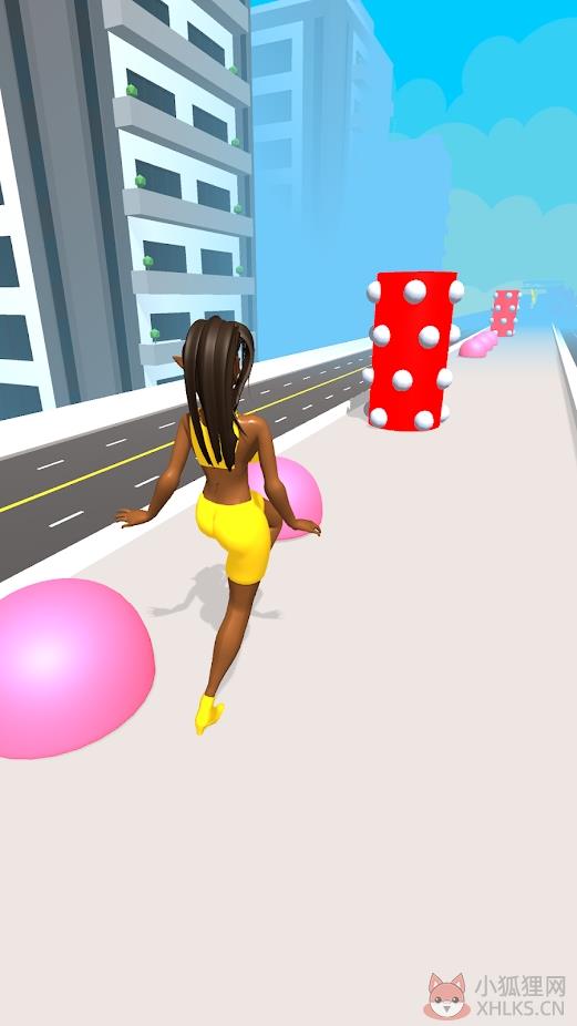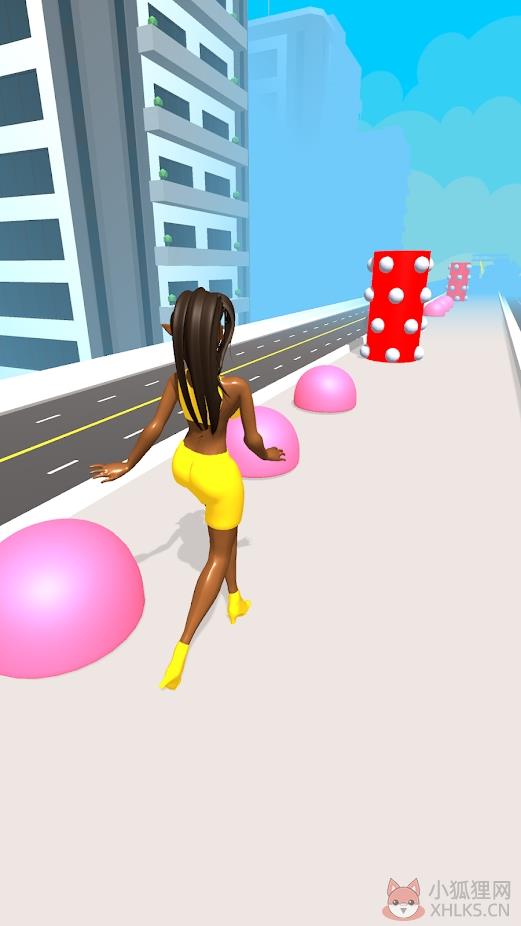 1.跑酷路途中有很多粉色小球,每次触发都会改变模特身上的服装,同时需要避开红色的圆柱障碍物。