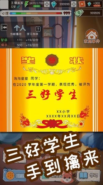 1、模拟并经历从幼儿园、小学、直到高考的成长之旅!不同学业和职业结局等你解锁;2、可以交际的男神(女神),培养感情,了解背后故事!精彩内容着实让人非常的沉迷;3、慢慢完成各种生活经历,这里将会有很多种你熟悉的选择,你会给你的孩子制定什么样的计划;游戏亮点: