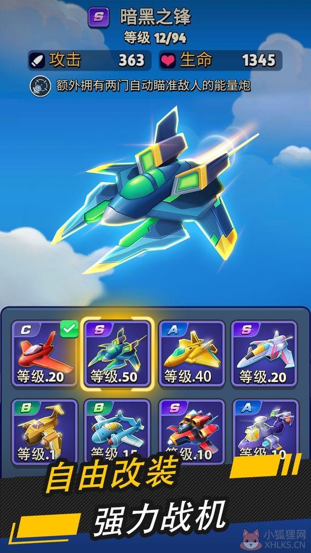 1、完成一系列闯关任务后,就能解锁全新战机。