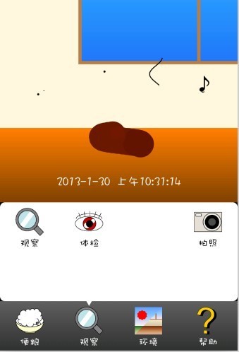 细心呵护你的便便,否则在你忽略它之后,它会感觉孤单甚至生病。在“观察”功能表中选择“观察”来随时查看你的便便的状况。