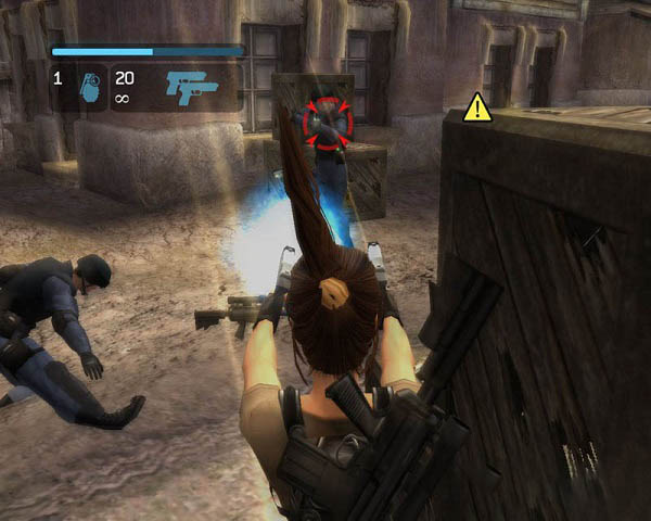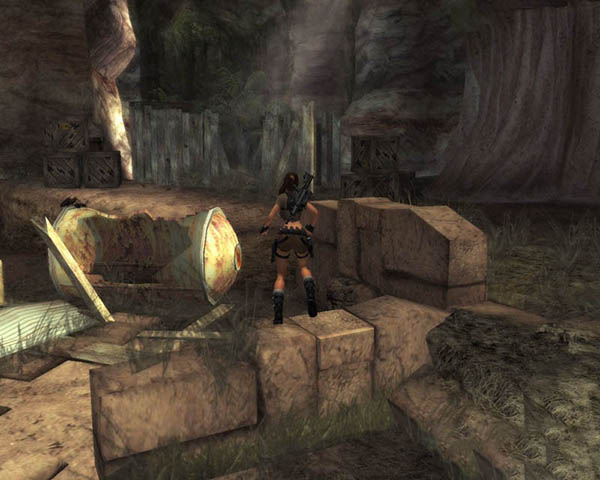镇上的居民得知了我的到来都纷纷跑回家藏了起来,我有一种不祥的预感。。。果然,我刚和Anaya碰面,就有一群雇佣兵冲了过来。。。Anaya一看这架势就想跑,可是碍于朋友的情面,没好意思开口,于是我就说“Anaya你先走,我会追上。。。”我的“你”字还没说出口。。。Anaya就已经消失的无影无踪了 解决了他们之后,我找了辆摩托车追上了Anaya。我们一起来到了当年的那个洞穴,就是在这里,我们遭到了洞穴怪物的追杀。。。本来我和Amanda都可以逃出来的,但是Amanda因为脚被岩石压住而没能逃出洞穴内的机关。。。我只能眼睁睁的看着她在水中被岩石掩埋。。。当听说我要再次下去时,Anaya竟然对我说她是什么工程师,应该生活在未来而不总是探访过去。。。还假惺惺的说SORRY。。。我头也没回的就自己进了洞穴(看来兄弟要比姐妹靠的住啊),在里面我竟然发现了Amanda的一只鞋子。。。原来Amanda真的还没死。。。我继续往前走,最后来到了一尊雕像前。。。天哪这里竟然有那把剑的复制品。。。不过剑的前端断了下来。。我拿起了断下的部分仔细看了起来。。。等等,我好象在哪里看到过这个。。。想起来了,我在日本的早稻田大学里见过,不过据说后来给Shogo Takamoto偷了。。。看来我要去拜会一下他了。。。