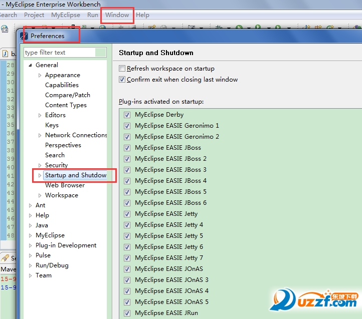 myeclipse会有很多的启动项,而其中很多我们都用不着,或者只用一两个,取消前面不用的就可以