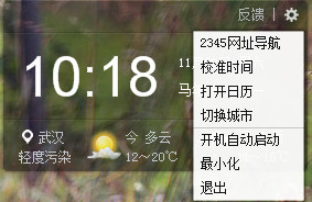 2345桌面天气日历挂件(电脑桌面天气插件)是一款桌面天气预报软件。软件不占用任何系统内存与CPU,把天气预报和日期设置在桌面上。软件小巧但功能强大。
