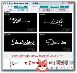 想要一手漂亮的签名么?想要你的签名和明星一样漂亮么?只要输入姓名,点一下鼠标,打印出来,多描写几遍 只要你输入你的姓名,软件立即生成你的签名--手工签名,完全区别于签名设计软件艺术签名研究和设计机构,为需要设计艺术签名的朋友提供 http://ishare.iask.sina.com.cn/f/14113052.html姓名签名设计免费版