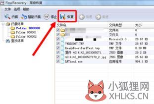 如果需要的文件都已经找到了,可以提前结束扫描。 第五步:恢复文件。在需要恢复的文件前面打钩,然后点击“恢复”按钮。 第六步:在电脑中建立个文件夹来保存恢复出来的文件。