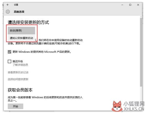 4、在“选择安装更新的方式中”选择“自动(推荐)”或“通知以安排重新启用”。但是没有关闭选项,如果需要关闭需要关闭windowsupdate服务,