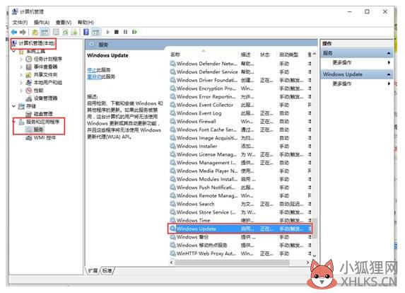 6、在“计算机管理(本地)”中选择下面“服务”;