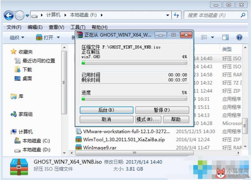 2、弹出对话框,执行光盘映像文件解压过程,需要等待几分钟;