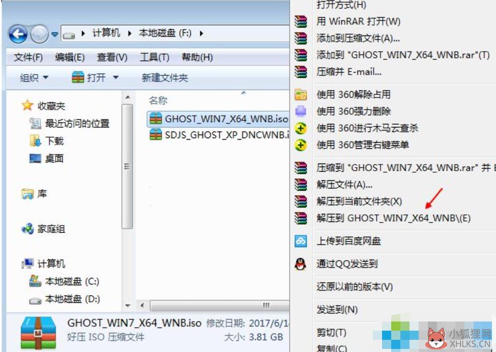 1、将下载完的光盘映像文件iso下载到C盘之外的分区,比如下载到F盘,右键使用WinRAR等工具解压到当前文件夹或指定文件夹,不能解压到C盘和桌面,否则无法安装;