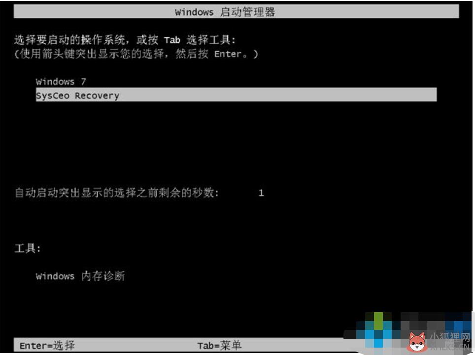 6、这时候电脑会重启,进入到这个界面,默认选择SysCeo Recovery项启动;