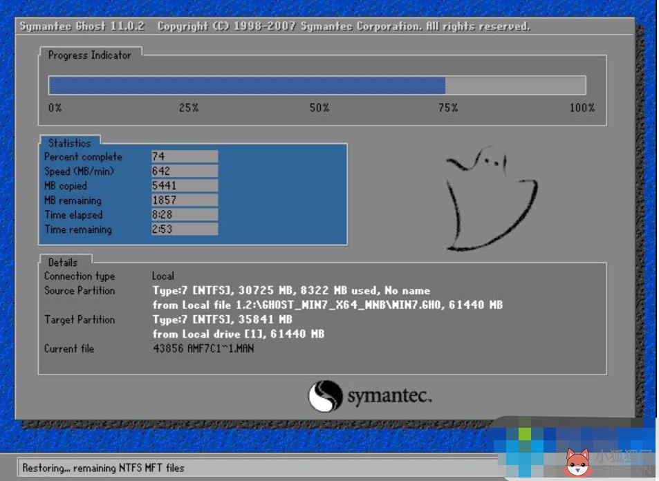 7、启动进入这个界面,执行C盘格式化以及系统映像安装到C盘的部署过程,需要等待3-5分钟;