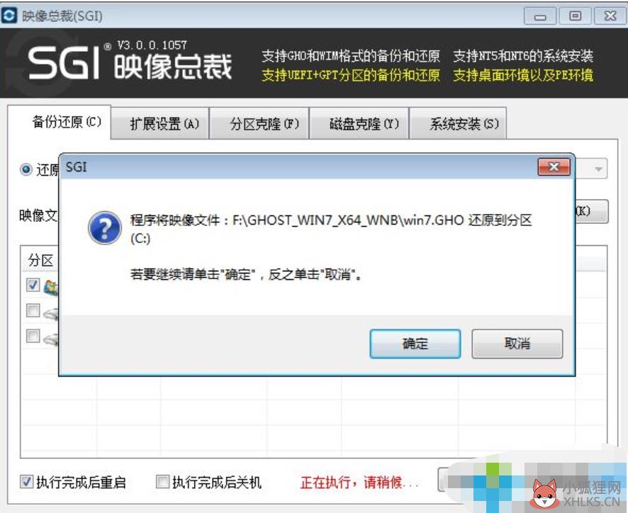 4、弹出提示框,提示映像文件即将还原到分区C,点击确定继续;